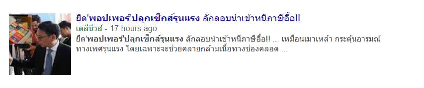2017年11月23日,泰国媒体每日新闻于当地时间18:57分报道,海关工作人员扣押了一批来自中国的违法走私商品(大多为强效“催情春药”),总价值约为10亿泰铢(1 พันล้านบาท ,人民币近2亿元),此类药水对激发女性性欲有强烈效果,特别是当中的"Poppers”物质,被称为“情欲芳香剂”。若在使用该催情药物的同时服用毒品(ยาเสพติด),性欲增强效果会提升5倍。