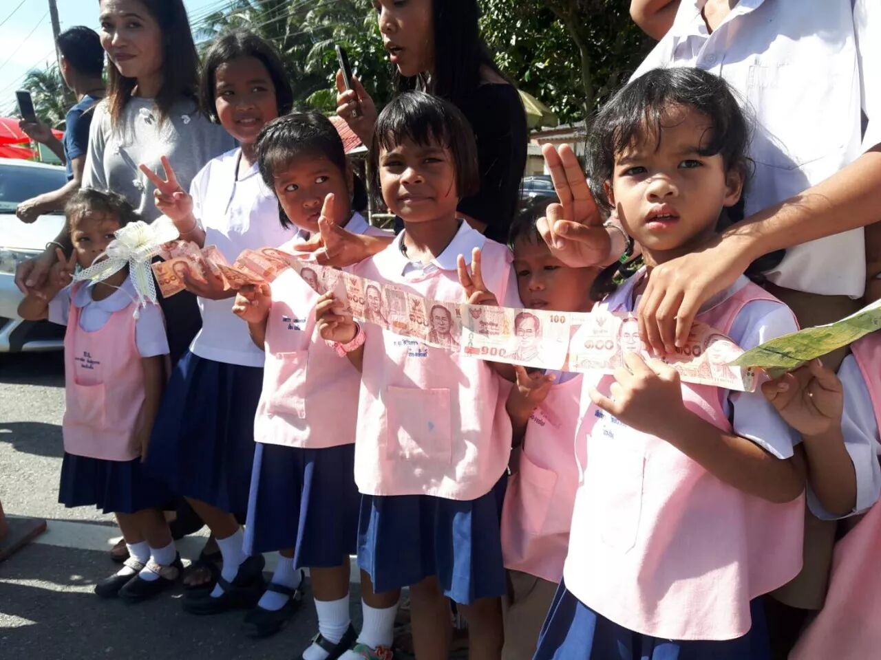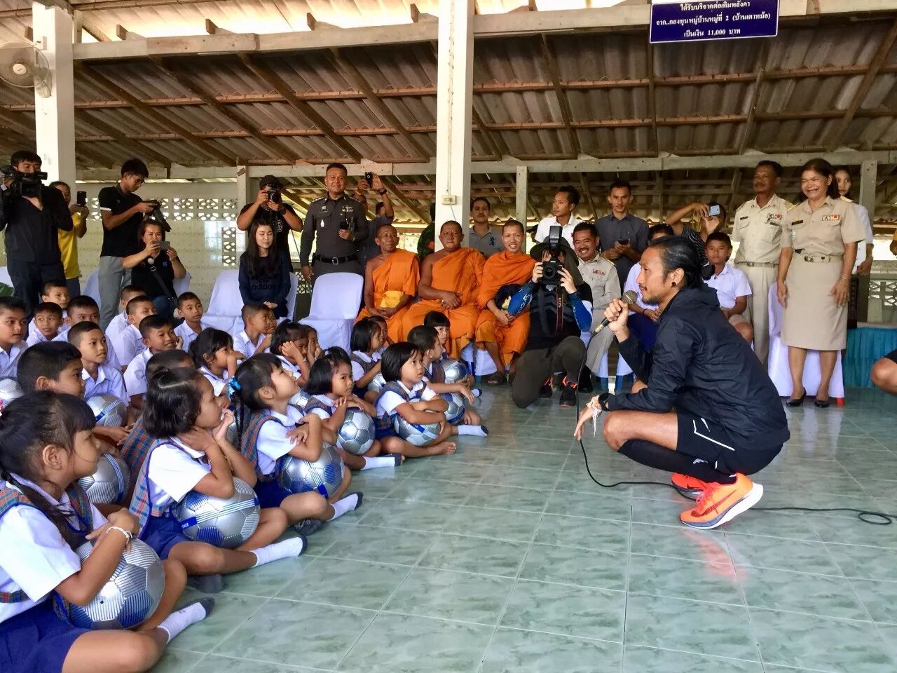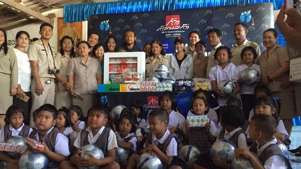 此外,歌手敦还向冲塔拉学校赞助5万铢和1批运动具。